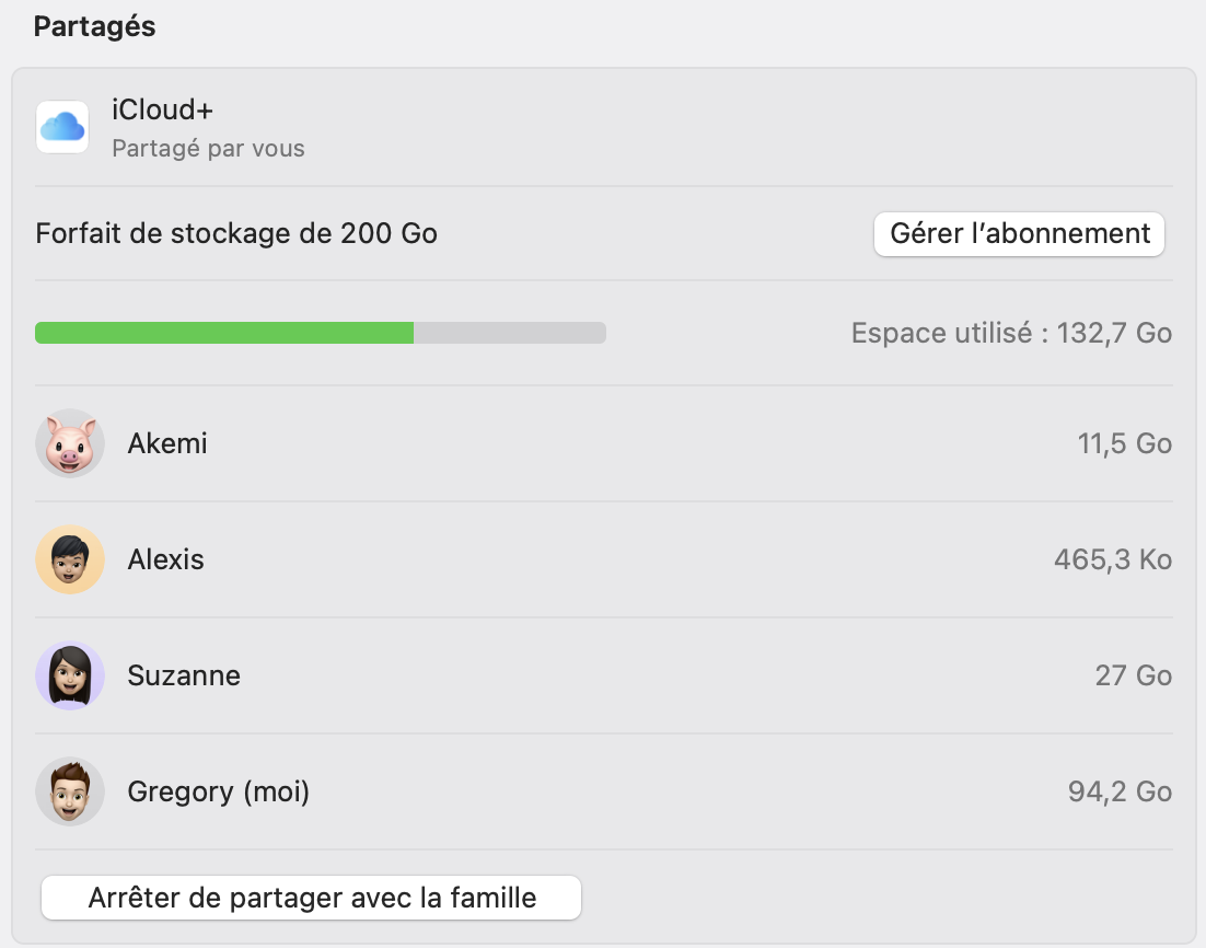 Membre famille n'a pas accès au partage de stockage Icloud+