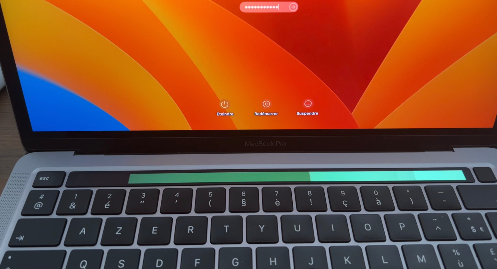- La TouchBar s'affiche en vert au démarrage et devient noir une fois arrivé sur mon bureau