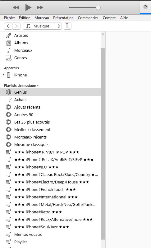 playlists absente dans l'onglet musique quand je connecte mon iphone