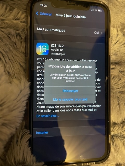 Si ton amie n'arrive toujours pas à mettre à jour son iPhone, je lui recommande de s'aider de l'article Si votre iPhone ou votre iPad ne se met pas à jour, qui semble correspondre à sa situation. Je pense notamment à la partie Supprimer et télécharger à nouveau la mise à jour qui propose plusieurs options que ton amie peut tenter.