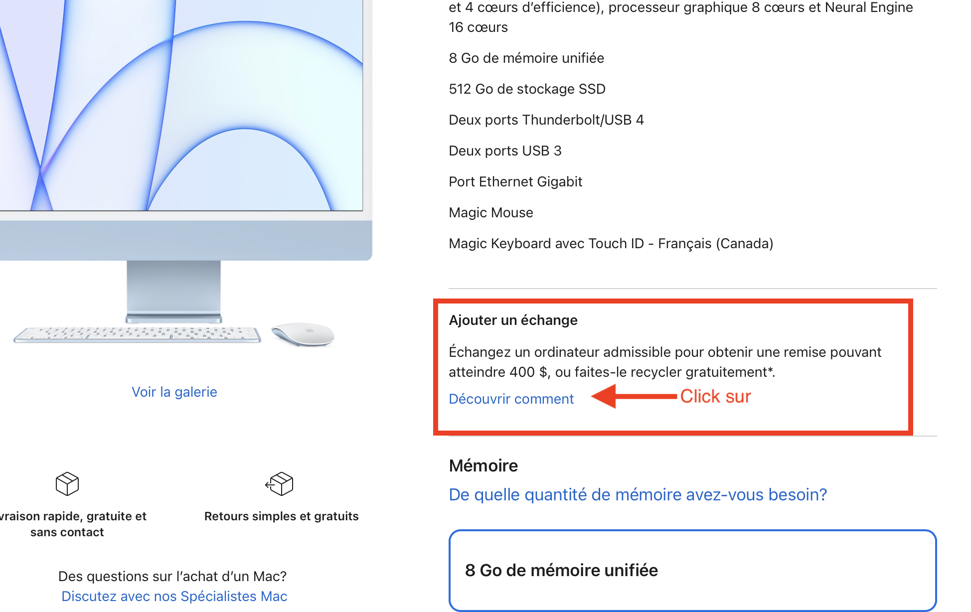 Est-il possible de bénéficier d'une ristourne si je restitue un iMac en état de marche pour l'achat d'un iMac neuf ?
