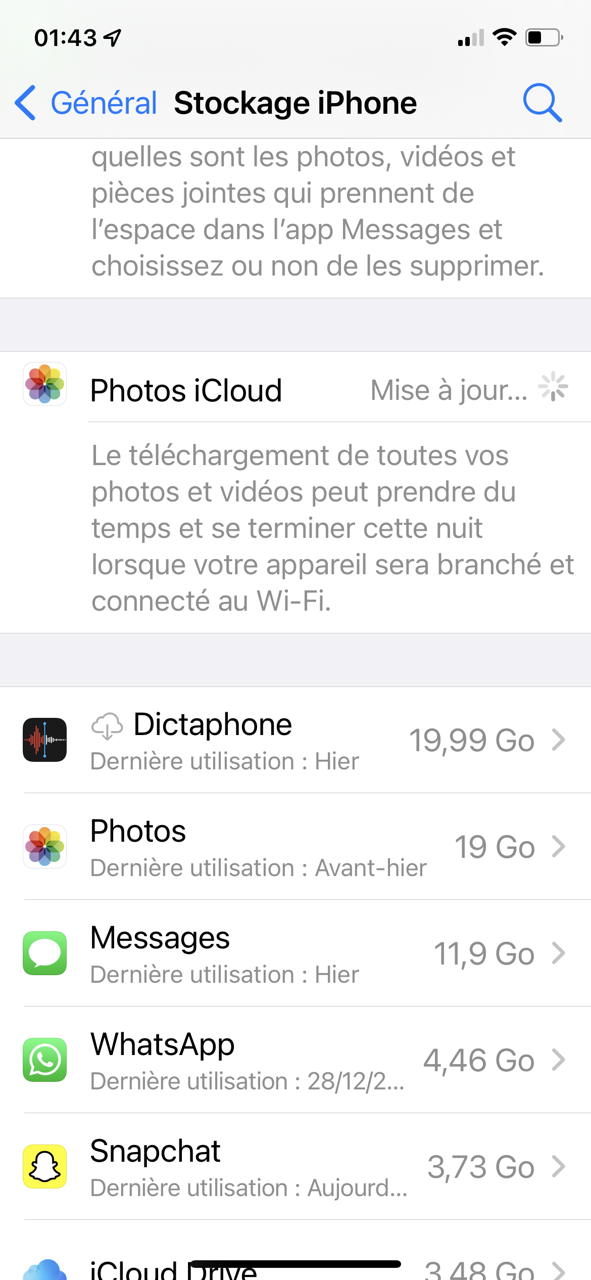 Bonjour, mon application Dictaphone sur iPhone 12 utilise 20 GO de stockage alors que j’ai supprimé tous les enregistrements. J’ai essayé de décharger l’application et même de la supprimer mais cela ne change rien… avez vous une idée ?