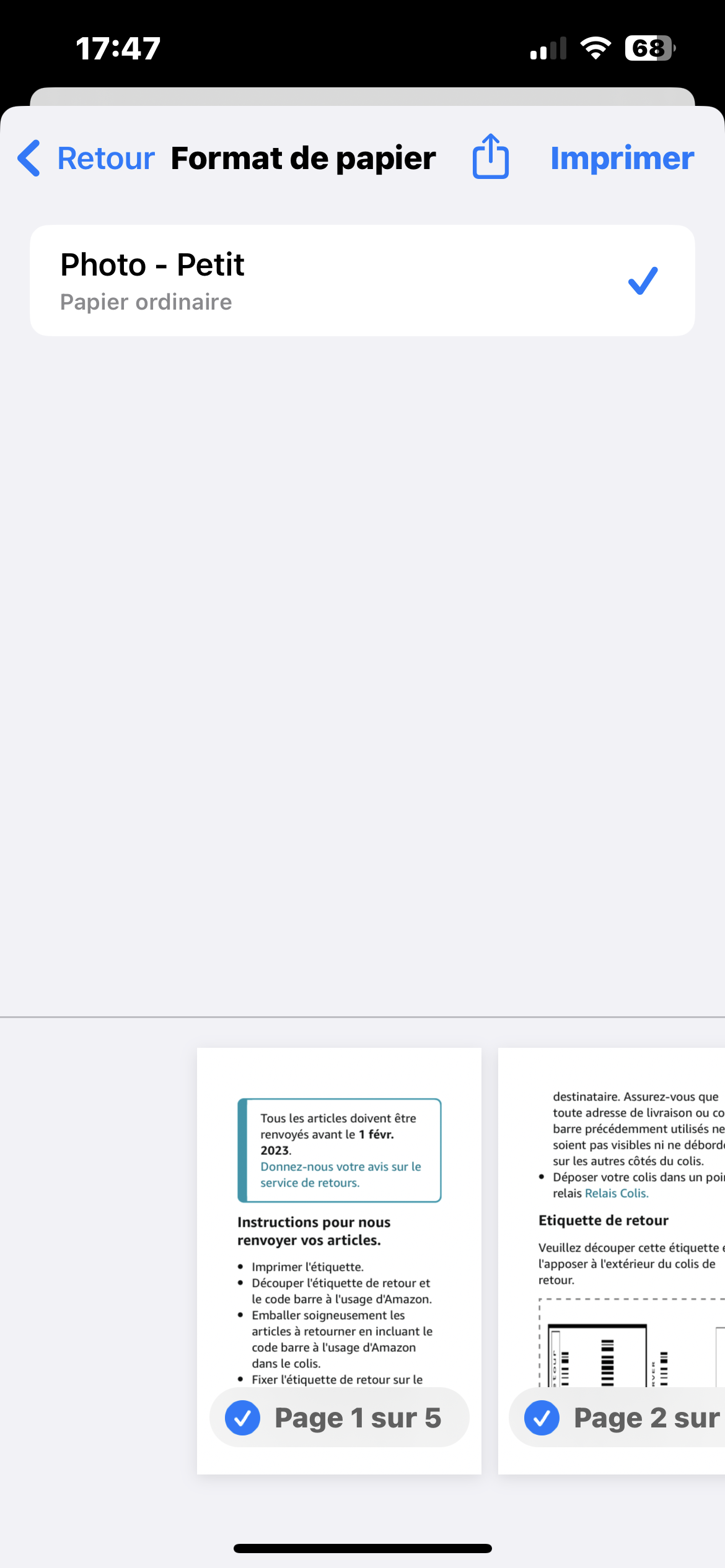 En effet, j'ai l'impression que les formats d'impression proposés sont différents en fonction de l'app à partir de laquelle tu lances l'impression, mais aussi en fonction du format de ton document (PDF, PNG, JPEG, etc.) comme tu peux le voir ci-dessous.