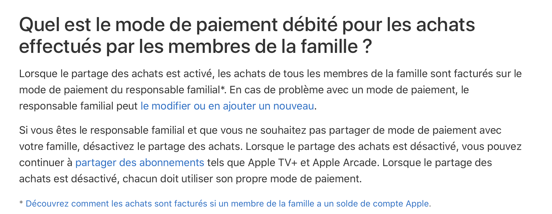 Il est vrai que pour tout ce qui est de la gestion des achats dans le partage familial, c'est le moyen de paiement de l'organisateur qui est utilisé.