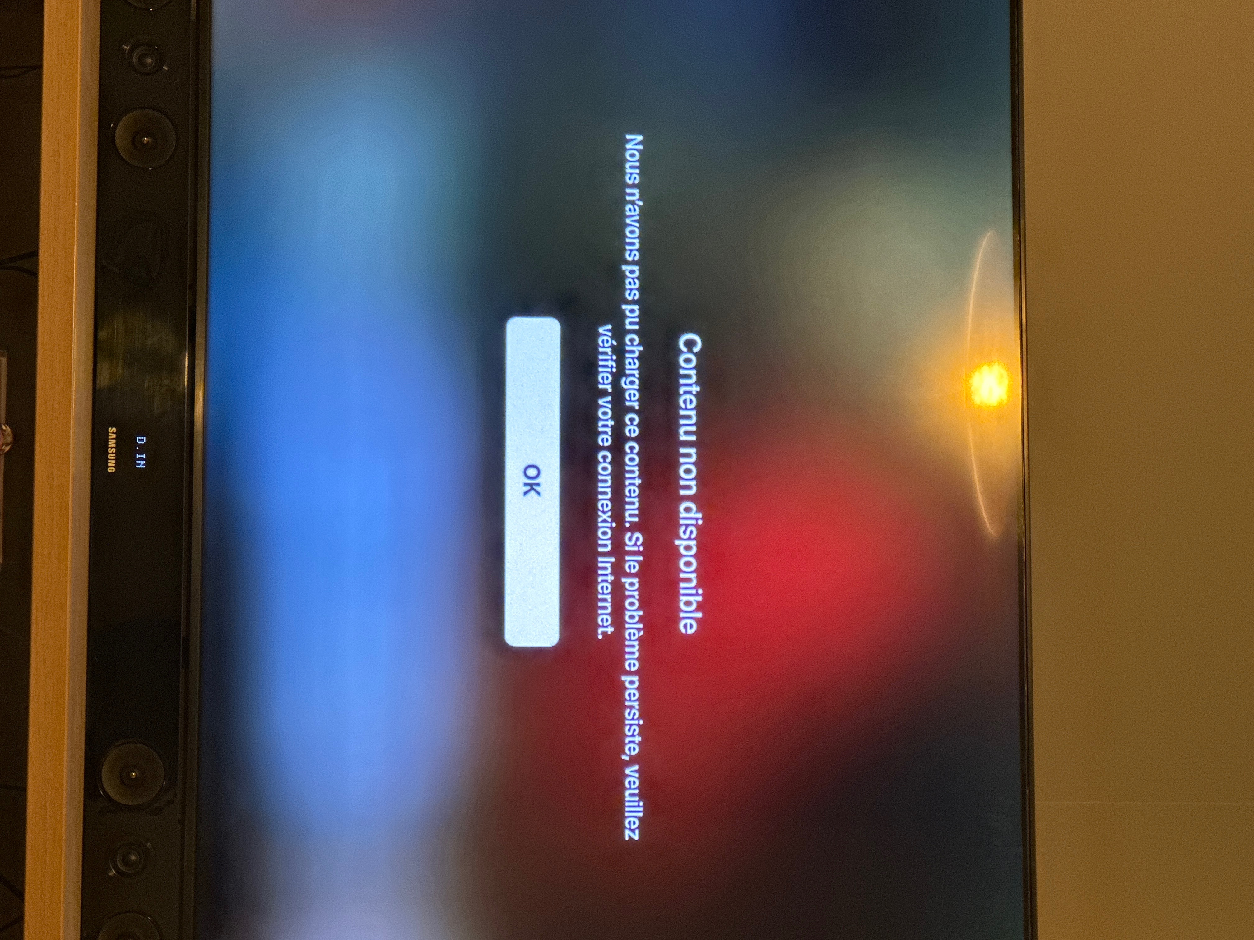 Bonjour, mon appli Apple TV ne fonctionne pas sur ma tv Samsung. J’ai bien la page de présentation mais lorsque je choisis une série cela me dit de vérifier connexion réseau. Pour info, les autres applis (myCANAL, Netflix et autres fonctionnent très bien) cela fonctionne aussi via Xbox. Ma tv est neuve et l’appli est à jour.