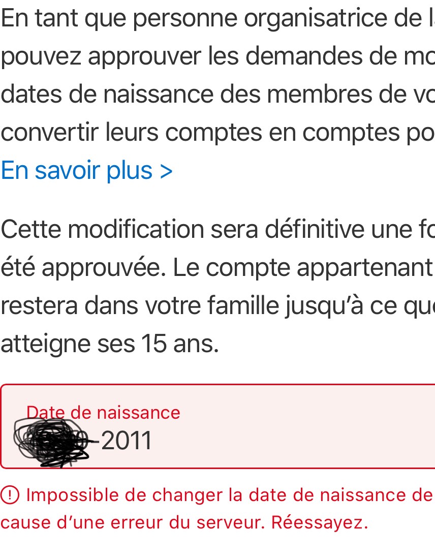Avant tout, peux-tu nous confirmer que tu suis bien les étapes données dans l'article Mettre à jour la date de naissance associée à votre identifiant Apple - Assistance Apple (FR) pour modifier la date de naissance associée à ton identifiant Apple ?
