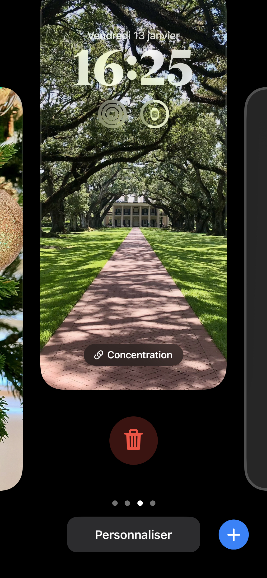 Par contre, tu peux supprimer les fonds d'écran que tu as toi-même créés à partir de l’écran de verrouillage de ton iPhone. Pour cela, appuie de façon prolongée sur ton écran de verrouillage pour ouvrir la galerie de fonds d’écran, sélectionne le fond d’écran de ton choix en balayant vers la gauche et vers la droite. Ensuite, balaye l'écran du bas vers le haut sur le fond d'écran de ton choix pour afficher l'option Supprimer et clique dessus.