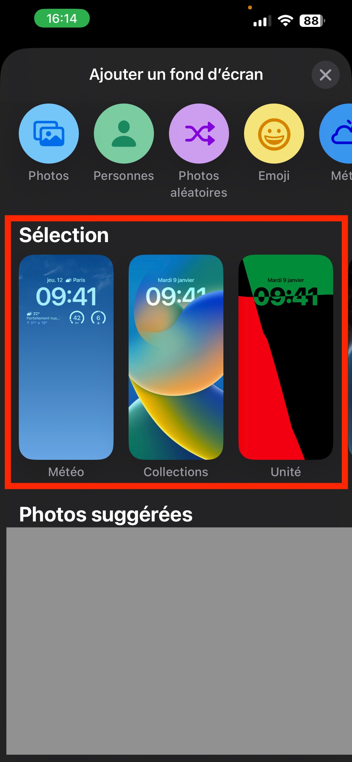 Tu ne pourras pas supprimer les fonds d'écrans intégrés à iOS c'est-à-dire ceux qui sont proposés dans la partie Sélection comme sur la capture d'écran ci-dessous.