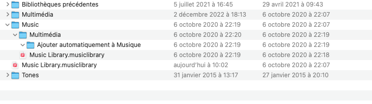 Ce qui me surprend, c'est la position des fichiers qui contiennent tous les CD qui se trouve directement dans Musique Multimédia. Ne devraient-ils pas être dans Musique Music Multimédia ? Pourquoi également y a t'il 2 Music Library.musiclibrary à des niveaux différents ?