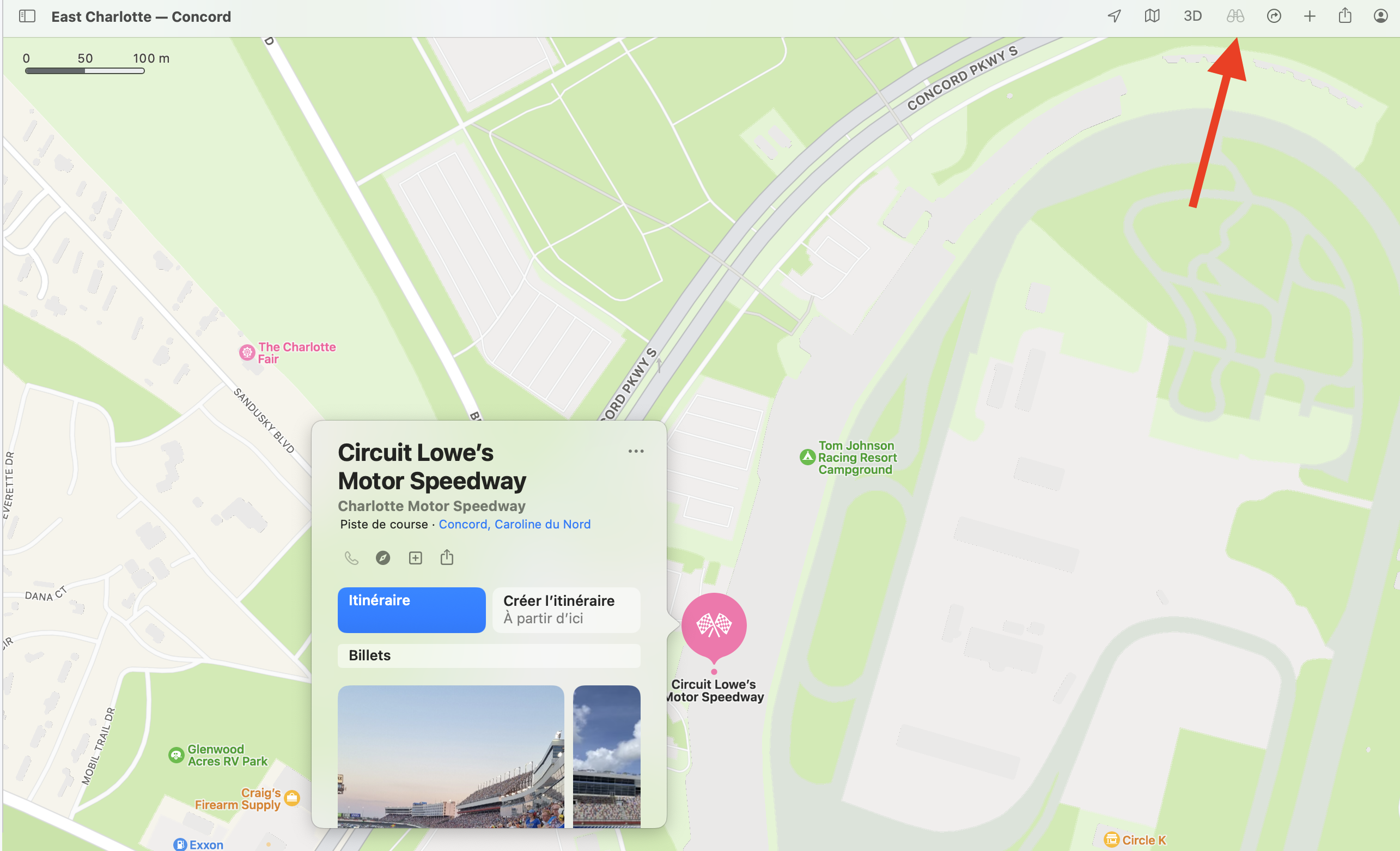 En se basant sur Vue à 360° dans Plans sur Mac - Assistance Apple (FR), voici ce qu'on a observé : si tu fais une recherche simple, pour une ville par exemple, les jumelles vont rester grisées.