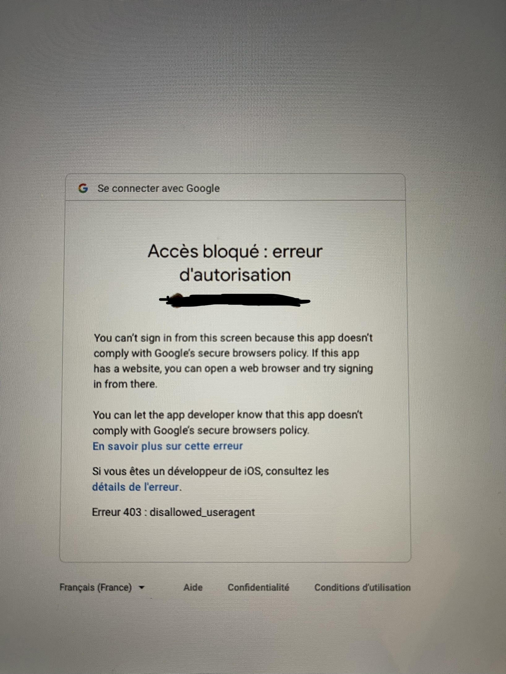 Si vous êtes un développeur de iOS, consultez les détails de l'erreur.