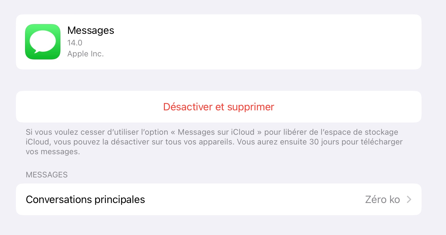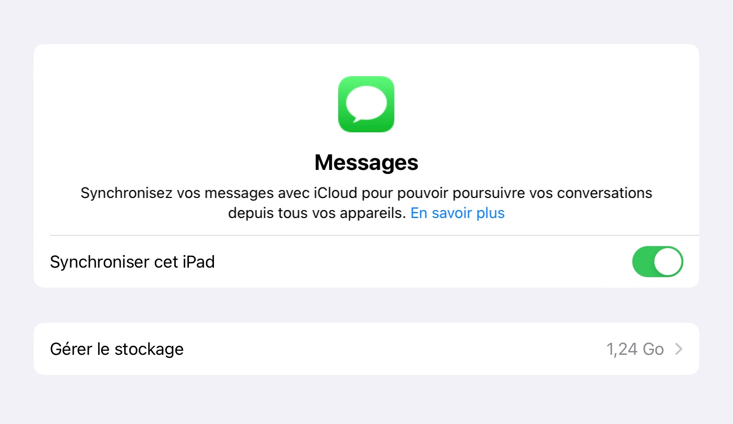 Tous les messages actuellement stockés dans iCloud sont désormais accessibles sur votre appareil et tous les nouveaux messages que vous recevez sur votre appareil seront stockés sur iCloud.