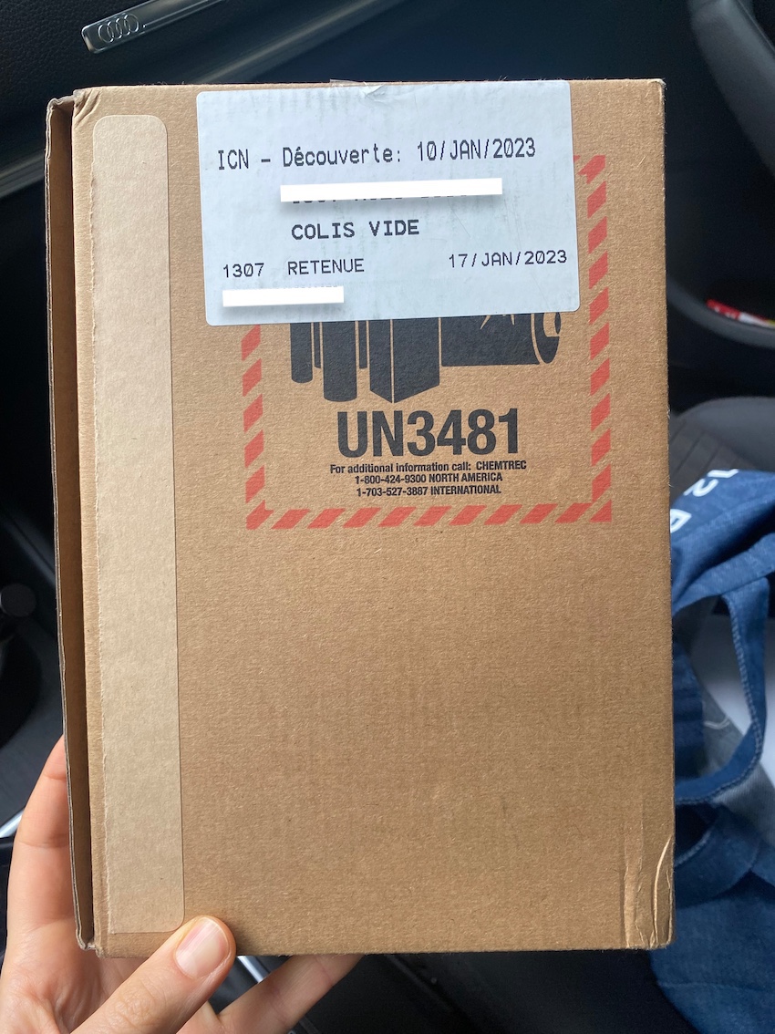 Colis reçu avec une étiquette mentionnant « colis vide »