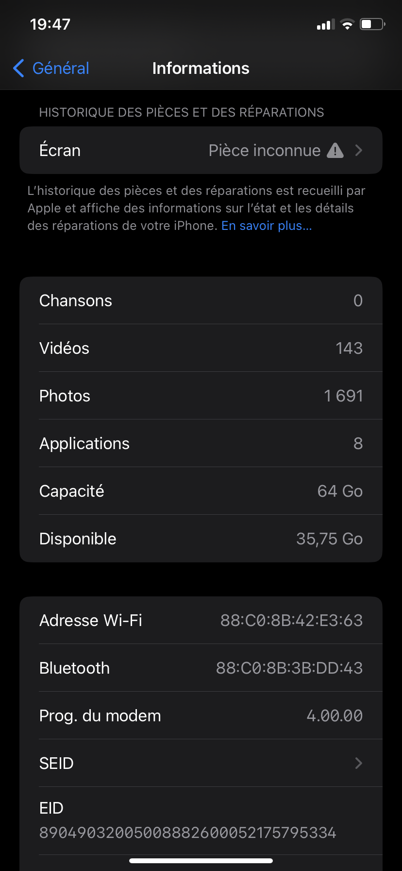 comment je peux savoir que l’ecran que j’ai changé est original?? Parce que j’ai la changé aujourd’hui et j’ai fais la mise a jour iOS 16.3 apres le changement et ca marché mais je vois sur le general une information <pièce inconnu>⚠️