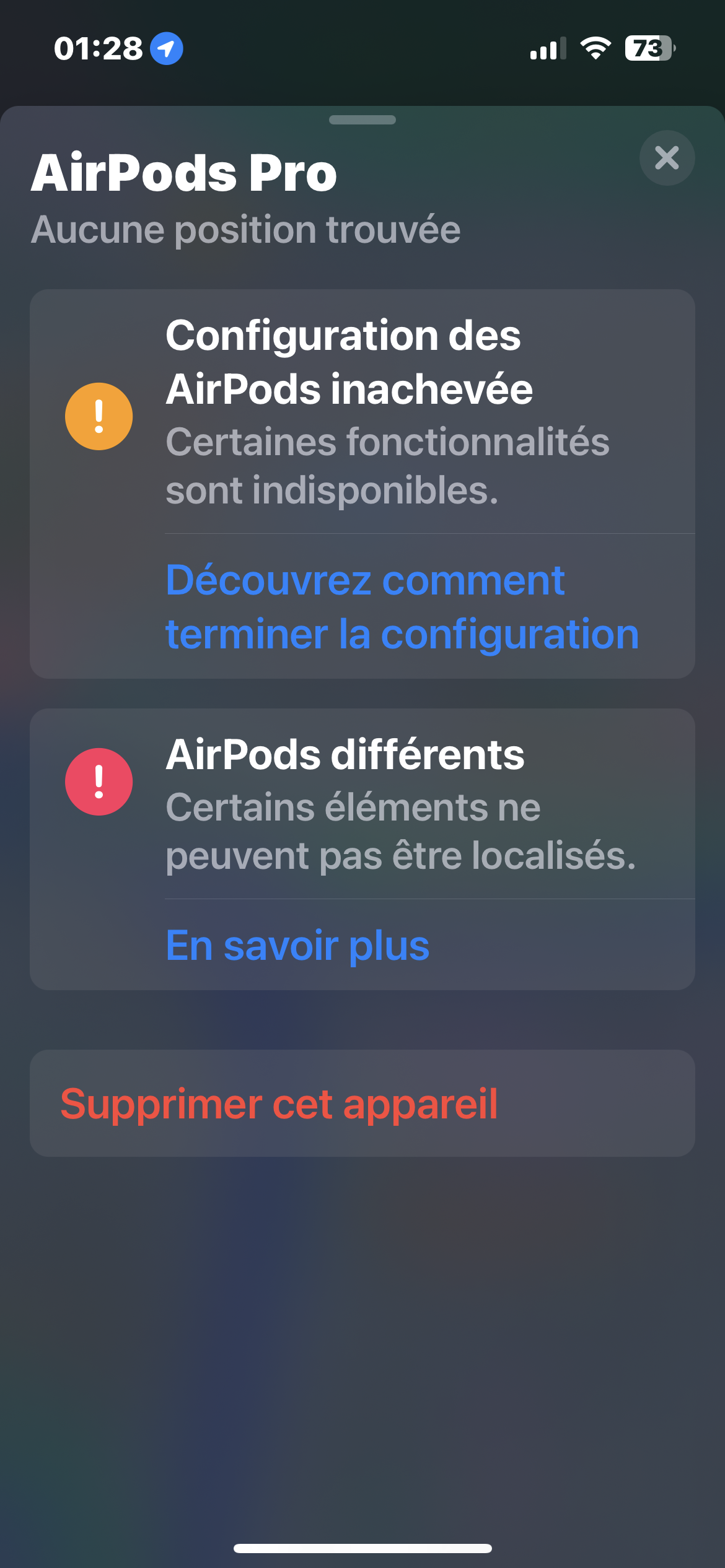 Sur ta capture, on peut voir le message AirPods différents. Il va donc falloir s'assurer que les AirPods sont bien de la même génération, c'est nécessaire pour avoir accès à toutes les fonctionnalités : Identifier vos AirPods - Assistance Apple (FR).
