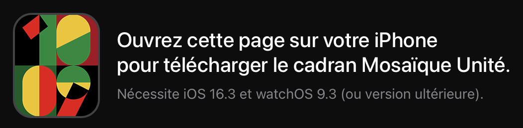 Donc la mise à jour permet le téléchargement du cadran, mais ne l'inclue pas par défaut. Du coup, ouvre le lien plus haut depuis ton iPhone, et ça te donnera la possibilité de télécharger le cadran. Ça se présente comme ça sur mon iPhone :