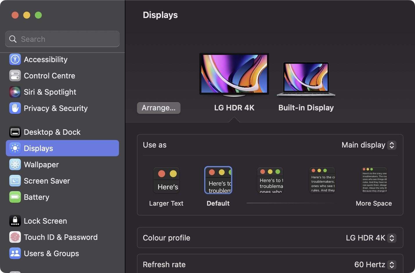 Étant donné que je suis sur un écran ultra wide, j'ai la possibilité de mettre en 5120x1440, mais je trouve que l'affichage du texte est trop petit donc je passe sur une résolution plus basse ( 4096 x 1152) qui me convient très bien SAUF que tout est flou vu que je selectionne 4096 x 1152 (basse résolution)