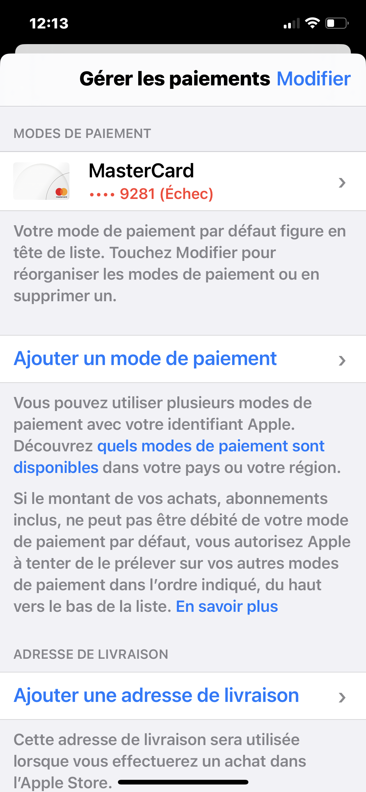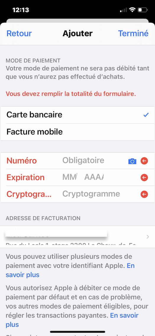 Supprimer mode de paiement Apple