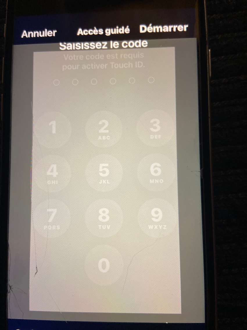 Écran avec rectangle plus clair impossible de faire code ou touche id