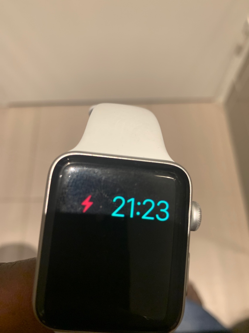 Mon Apple Watch affiche un éclair rouge bien que positionner sur son socle de charge impossible de la relancer j ai l’impression qu’elle a beugé même en appliquant le process de forçage elle m indiqué l’heure en vert et tjs l’éclair rouge