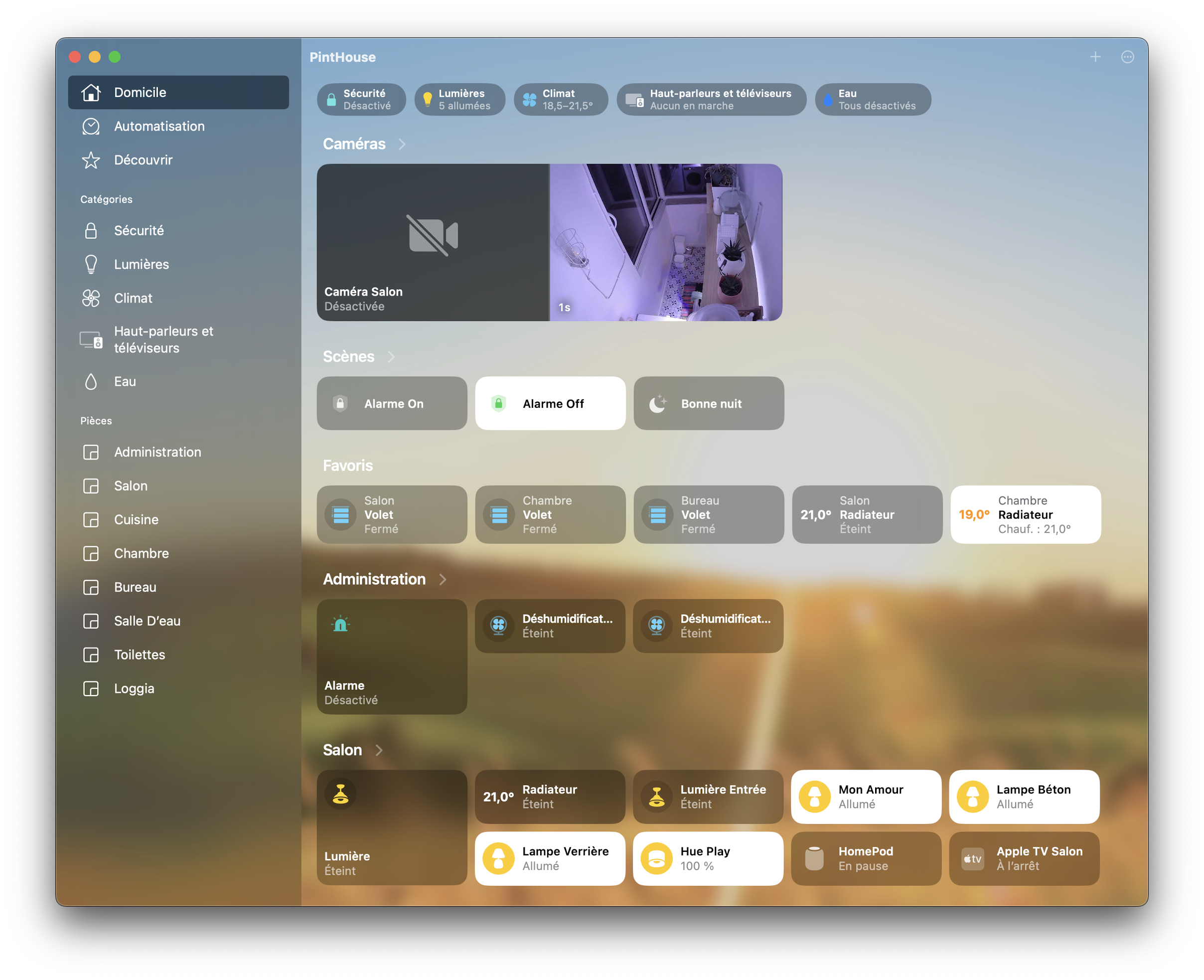 Par contre, si je vais sur l'iPhone / iPad / Mac, je peux utiliser tous les accessoires HomeKit (et même les HomePod pour diffuser de la musique via l'application HomeKit.