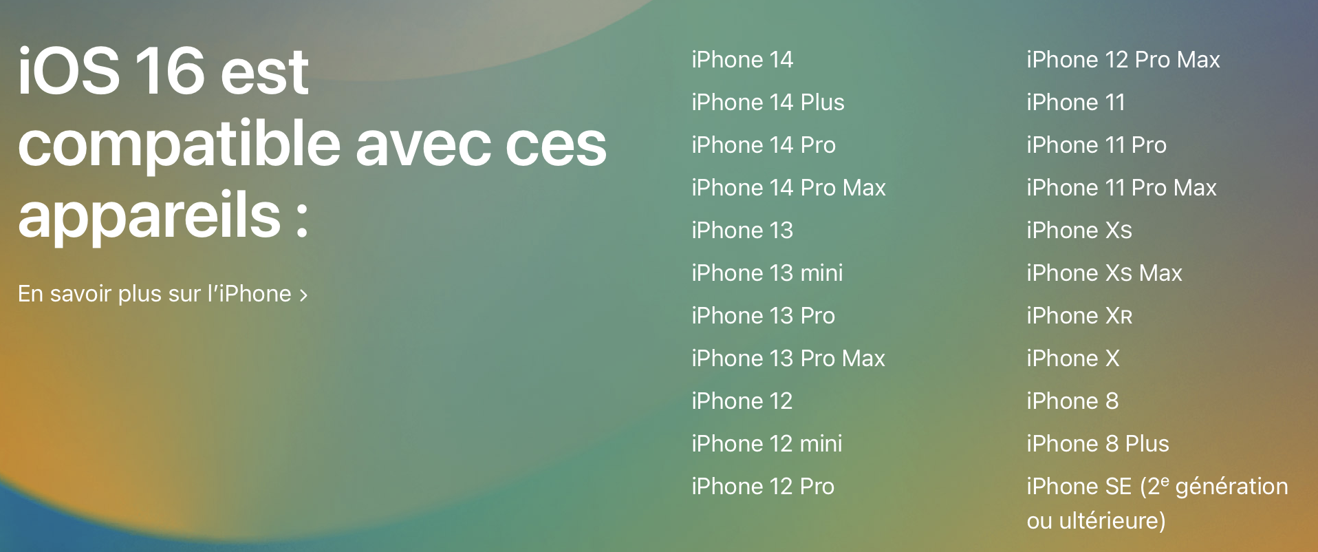 Je vous assure que ce n'est pas possible. Seuls les iPhones suivants sont compatibles avec iOS 16 :