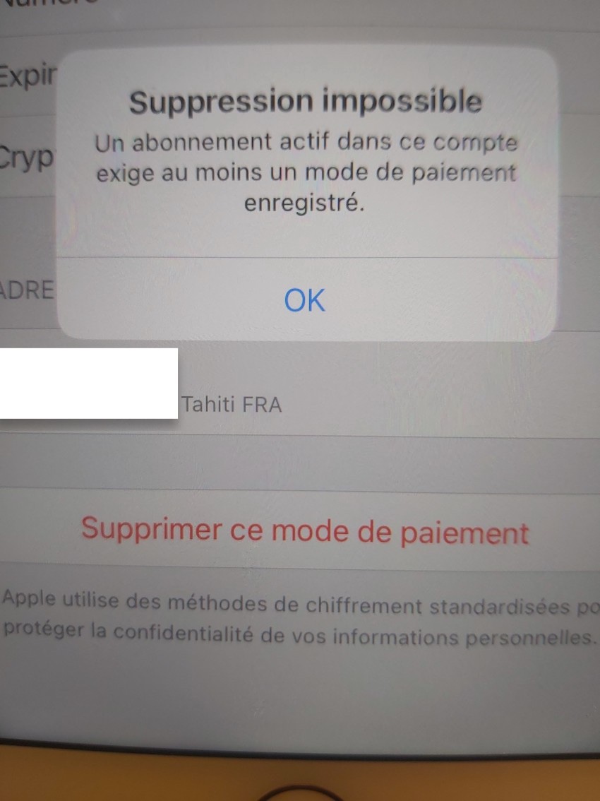 Alors je m'explique, je compte désactiver mon compte icloud maintenant je n'arrive pas à supprimer le mode de paiement par défaut que j'ai mis.