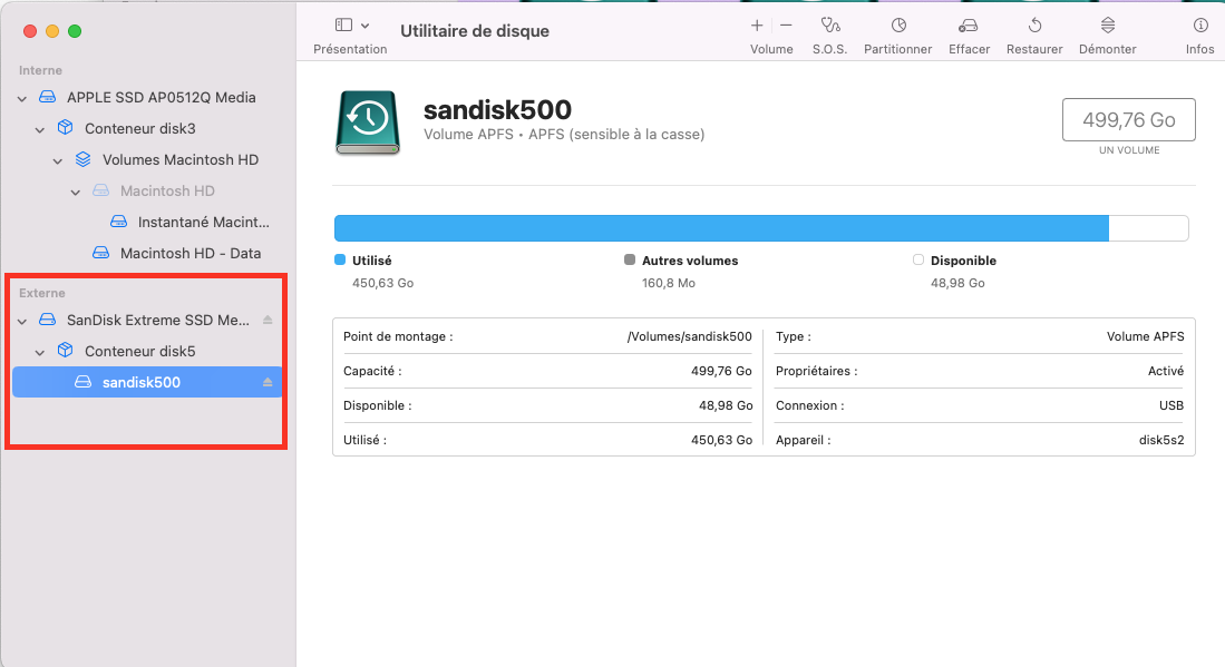 Disque SSD externe Mac est en lecture seule et sans cadenas