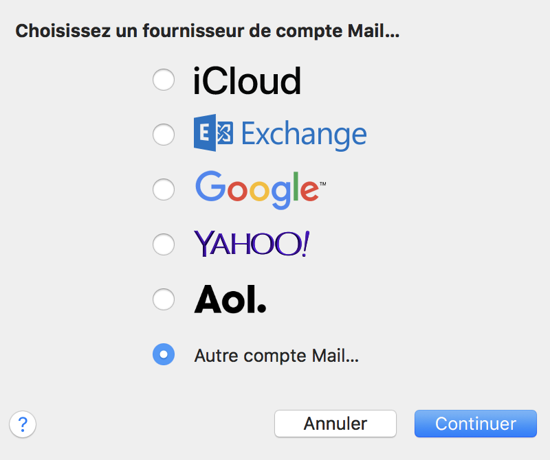 Erreur ajout compte de messagerie Mail Mac