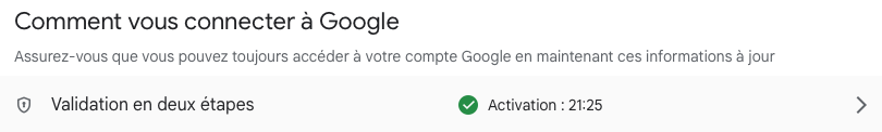 J'ai activé la validation en 2 étapes ICI