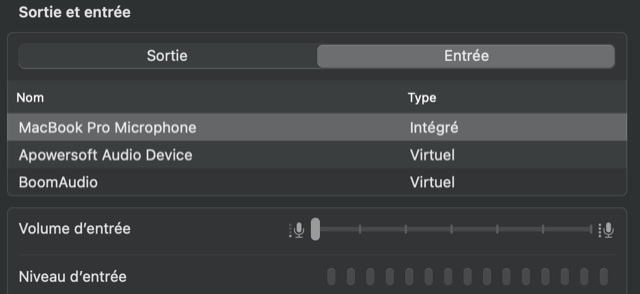 Il te faut également vérifier des réglages comme indiqué dans cet article : Contrôler l’accès au micro sur Mac - Assistance Apple (FR).