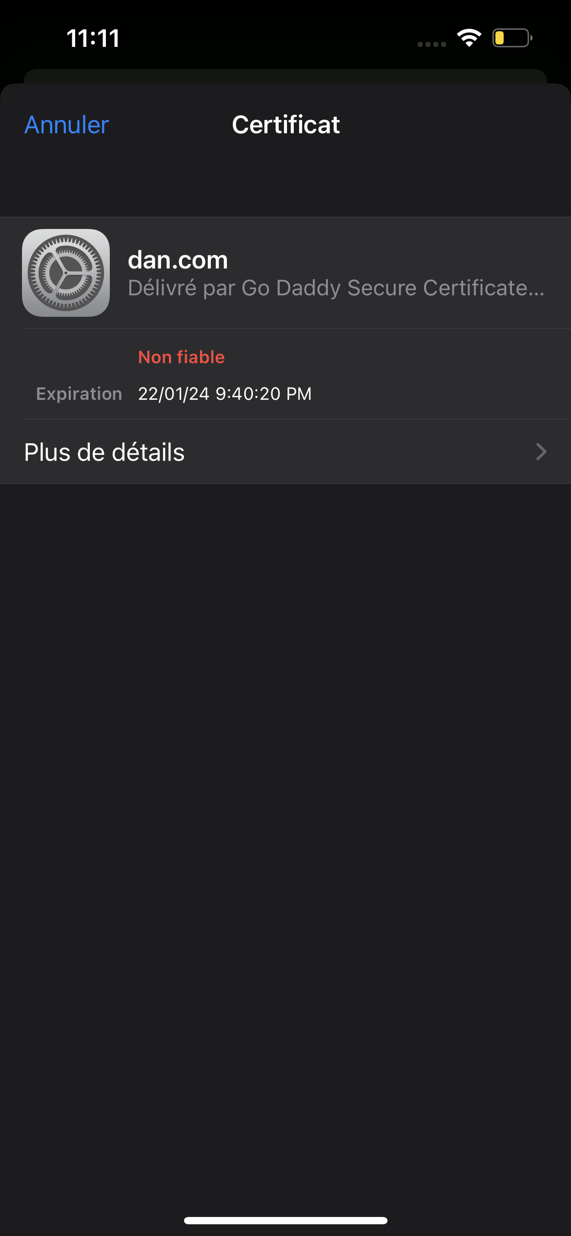 J’ai eu une notification d’un certificat qui se nomme dan.com il est délivré par Go Daddy secure.