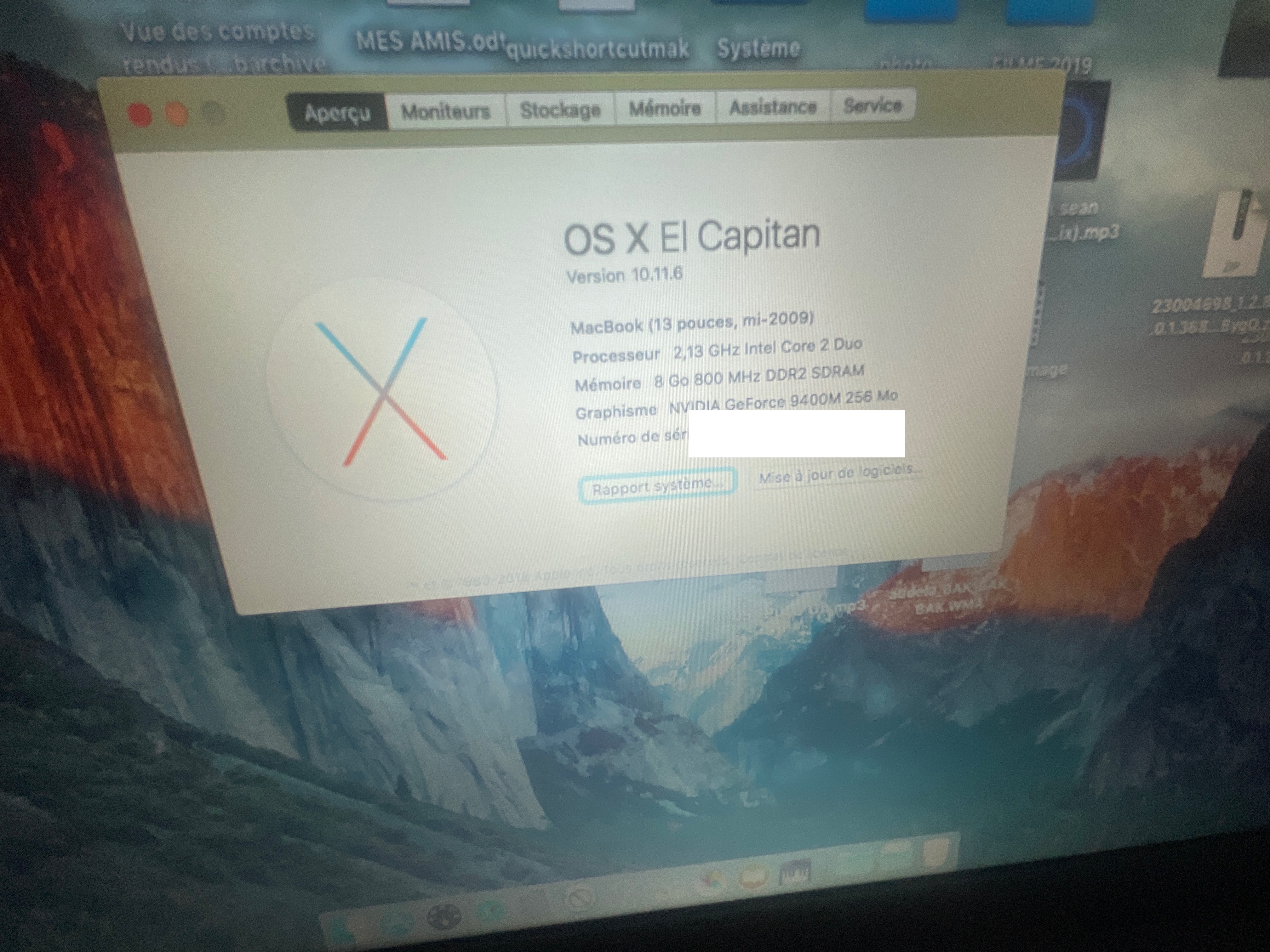 Je t'invite également à nous renseigner sur l'année, le modèle et la version logicielle de ton Mac. Nous pourrons alors savoir si ton Mac est à jour sur la dernière version disponible pour son modèle ou non. Tu trouveras ça en cliquant sur en haut à gauche dans la barre des menus > À propos de ce Mac.