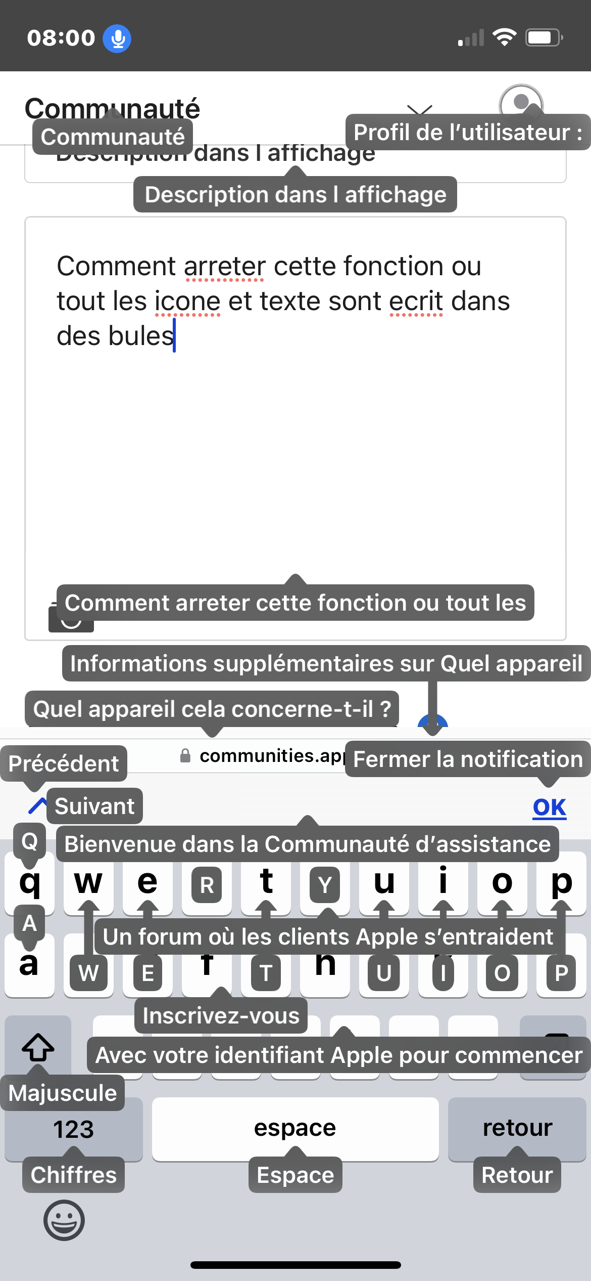 Comment arreter cette fonction ou tout les icone et texte sont ecrit dans des bules