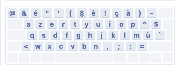 L'utilisation d'un clavier Canadien Français ou USA (QWERTY) car les chiffres sont par défaut sur les touches