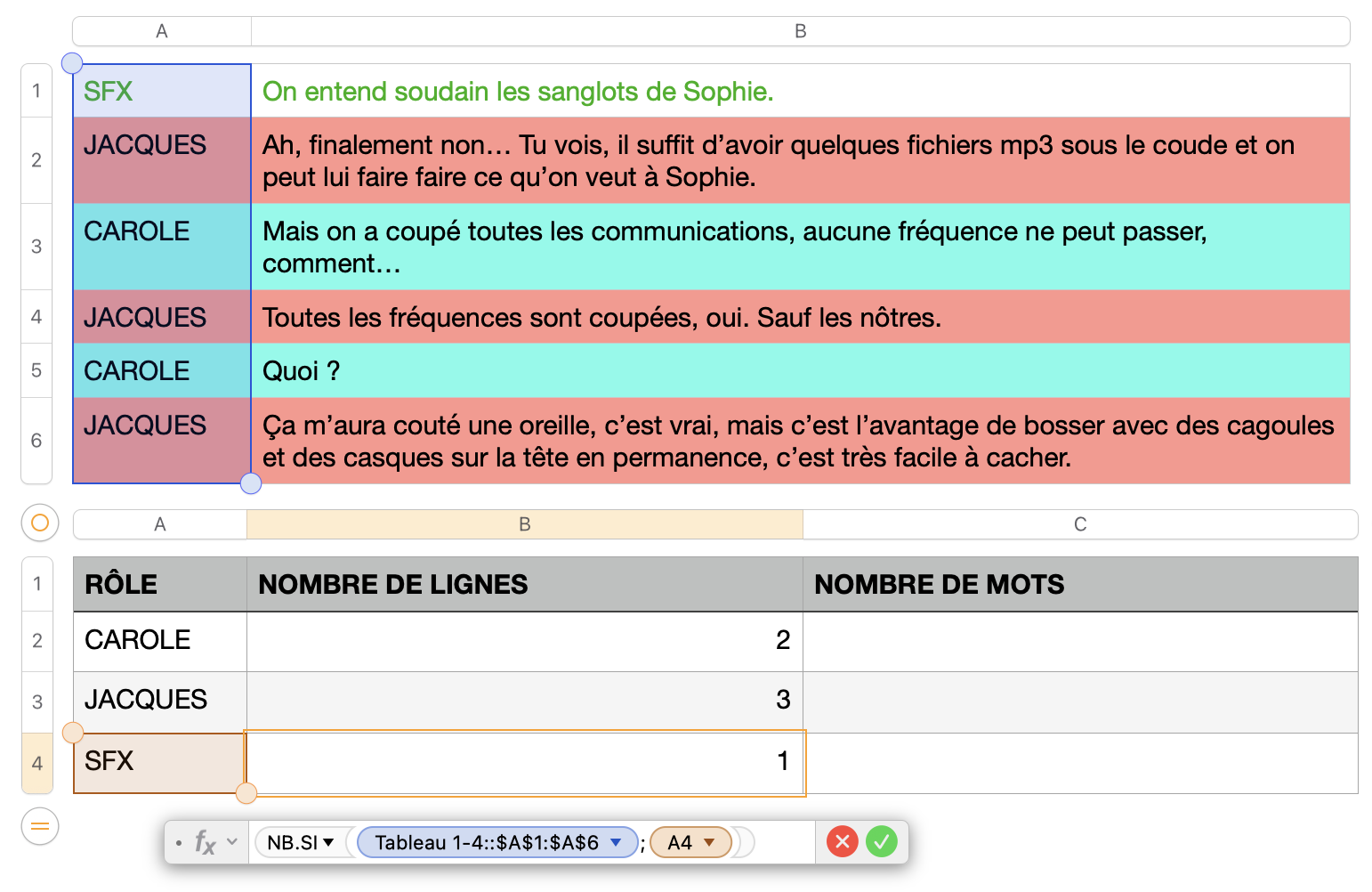 Calculer le nombre de mots dans un tableau, sous conditions (Numbers ou Pages)
