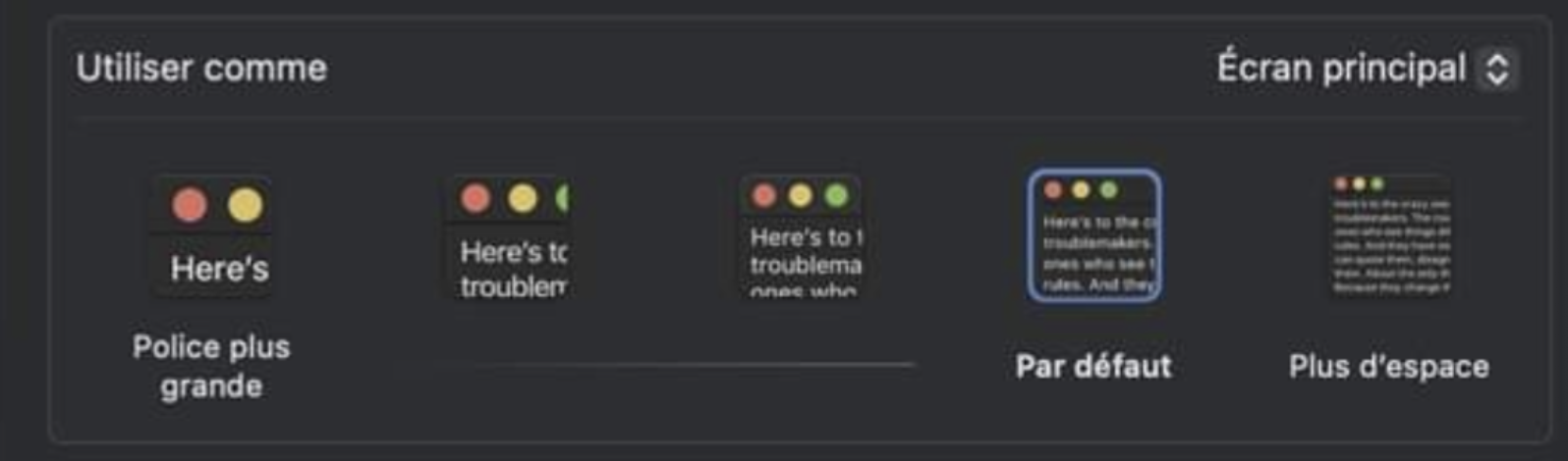 Changement taille police écran externe Mac impossible