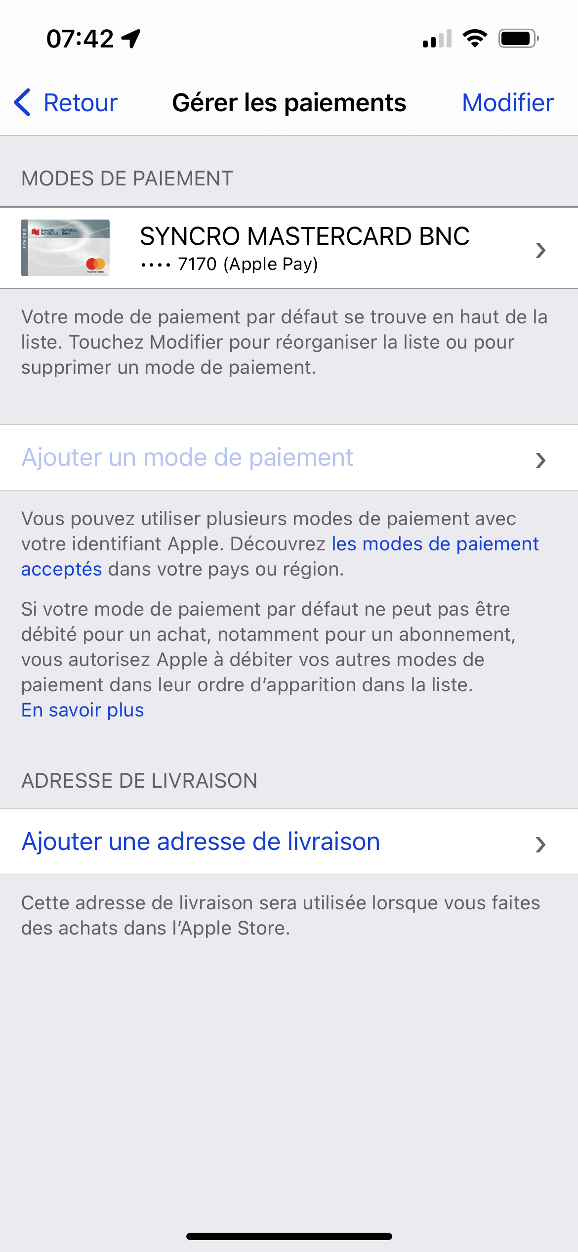Lorsque je vais dans paiement et livraison j'ai une carte de crédit enregistré je voudrais ajouter un autre mode de paiement mais l'option ajouter n'est pas "disponible" je peux la lire mais pas cliquer dessus???