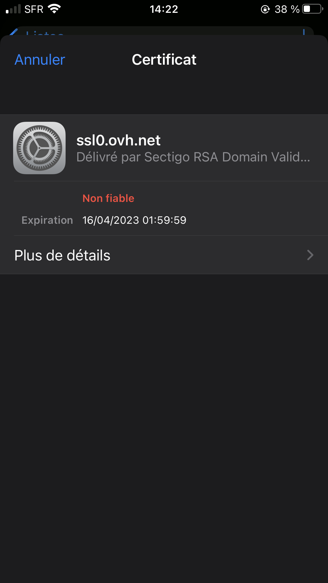 Réparer certificat racine de confiance sur iPhone