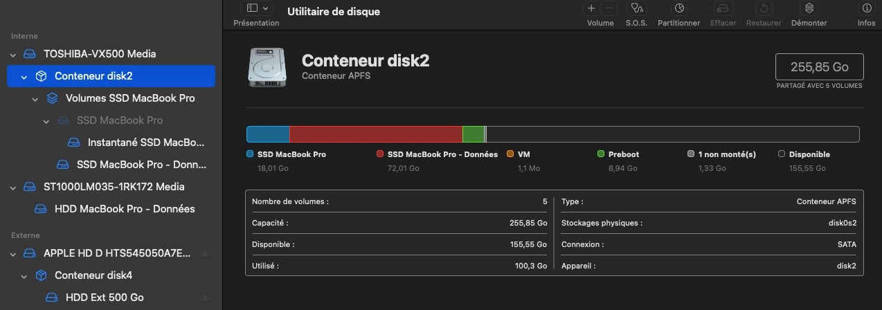 Comment configurer de manière optimale 2 disques dur interne sur MacBook Pro mi 212