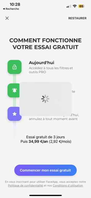 J'ai acheté une application aujourd'hui, car un message avec un nouvel essai est apparu sur mon application applestore (3 jours d'essai).