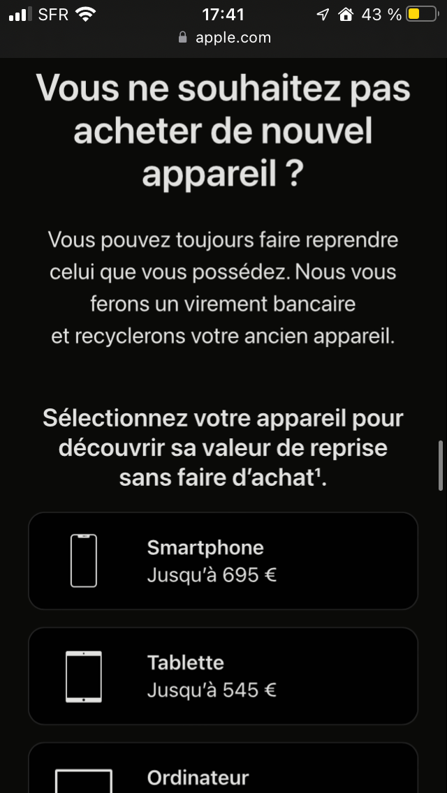 Vous pouvez faire reprendre votre téléphone sur Apple Trade In sans acheter d’autre appareil en descendant vers cette image.