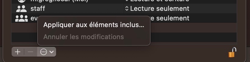> Puis sur l'icône (...) validé appliquer aux éléments inclus si des sous dossiers sont présent.`