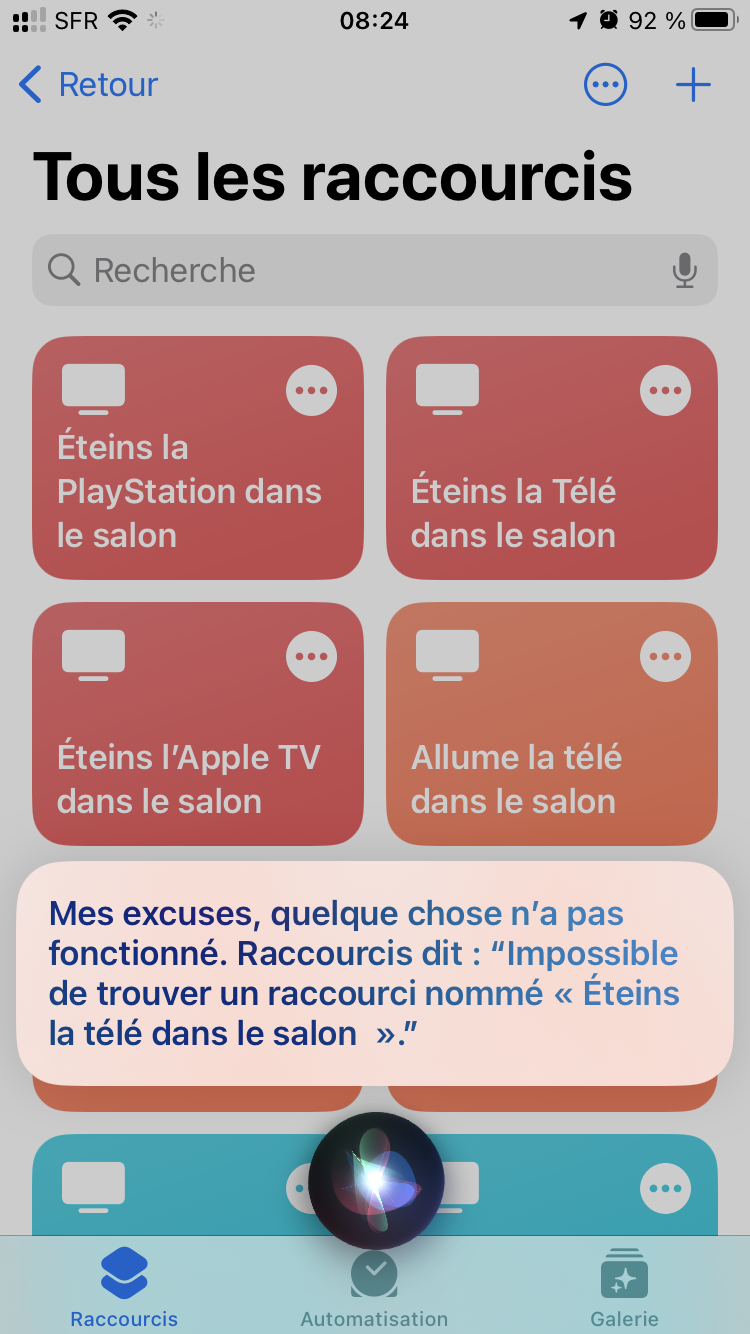 Siri iPhone ne trouve pas les raccourcis