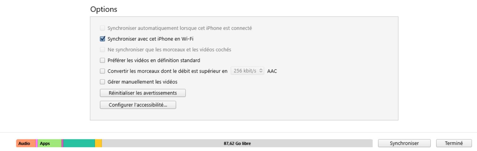 J'ai des musiques format m4a que je souhaite transférer sur mon téléphone. J'avais déjà fait il y a plus de 6 mois à l'achat de mon téléphone grâce à itunes. Mais là je ne comprend absolument pas pourquoi je n'y arrive plus. Lorsque je recherche des tuto sur le net, je constate que l'UI de itunes au niveau des options de synchro diffèrent totalement de ce que j'ai.
