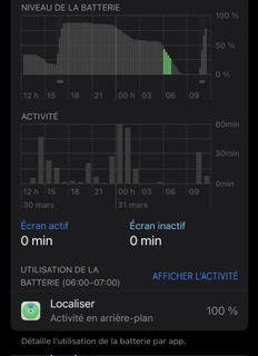 Pourrais-tu nous fournir une photo de l'écran où tu vois que l'app Localiser a consommé 100% ? Si tes informations personnelles apparaissent sur la photo, je te conseille de les effacer au préalable.