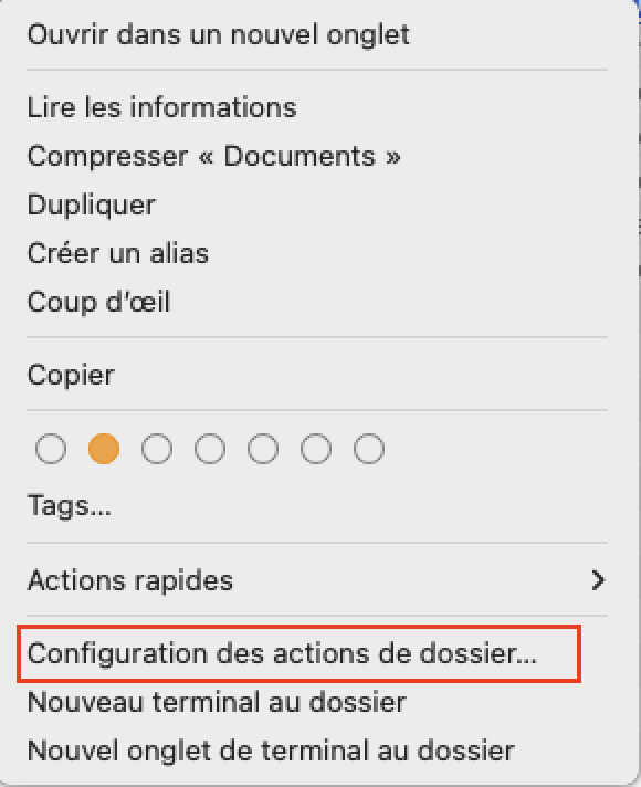 J'ai rencontré quelques problèmes pour le rendre effectif mais, si vous en avez, la solution semble toujours être de supprimer les actions de dossier ("Configurer des actions de dossier", dans mon message précédent) et de configurer l'action de dossier en cliquant droit sur votre dossier, de choisir "Configurer des actions de dossier" et de sélectionner le processus/fichier que vous avez créer dans Automator.