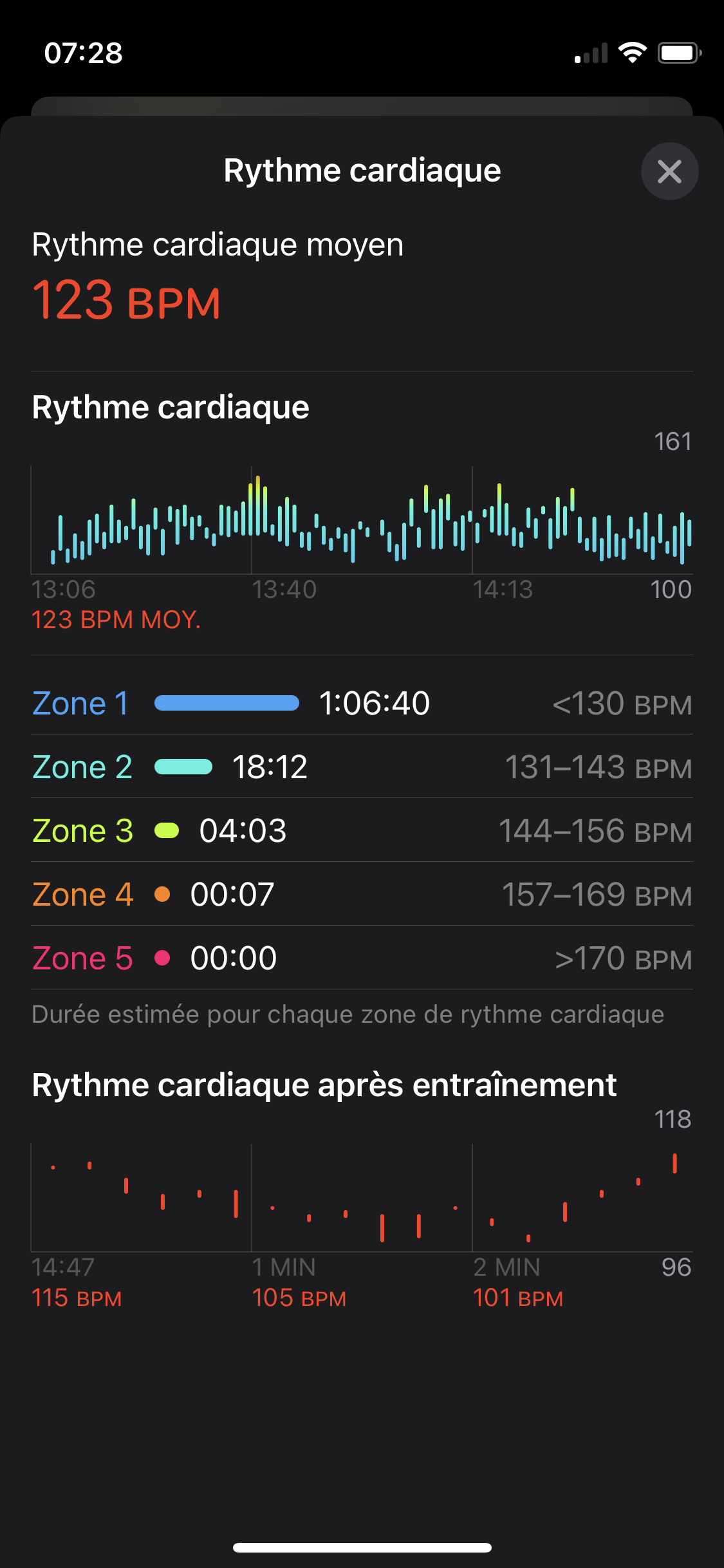 Il faudrait aussi qu'il aille sur son iPhone dans l'app Watch > Ma montre > Exercice > Zones de fréquence cardiaque et qu'il regarde quels sont les réglages sélectionnés.