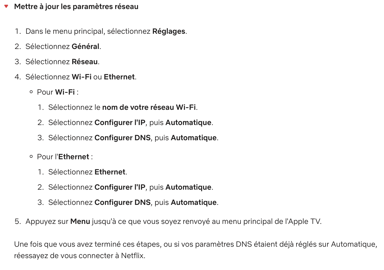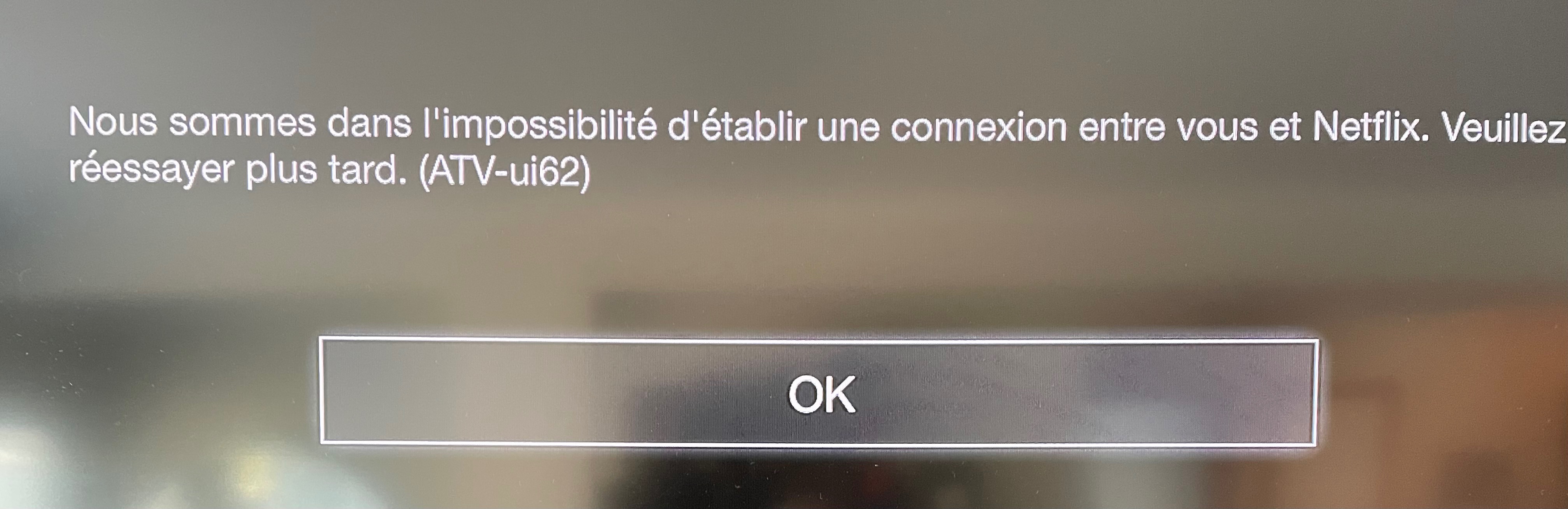 J’ai des messages d’erreurs avec Netflix sur mon Apple TV de génération 2. Netflix me renvoie à Apple. Message d’erreur ATV-ui510-3. Mon internet fonctionne, mon logiciel apple tv est à jour, j’ai redémarré internet et l’apple tv, mais rien réglé. Merci
