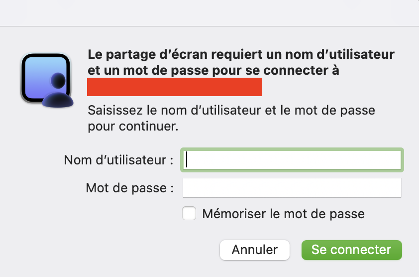 Lorsque je me connecte via Partage d'écran depuis mon Mac sous Ventura sur un autre Mac du réseau (mais j'avais déjà le problème avec Monterey et Big Sur), après authentification avec compte administrateur, je me retrouve sur la page de login de la machine distante. Ensuite je dois me connecter sur un compte utilisateur, en le sélectionnant et en entrant le mot de passe associé...